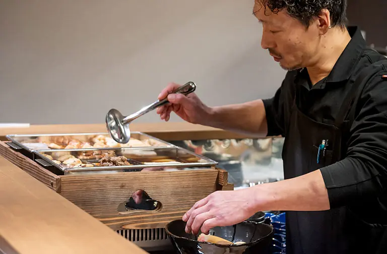 毎朝仕込む出汁、蕎麦屋で培った手仕事が織りなす滋味深い味わい。