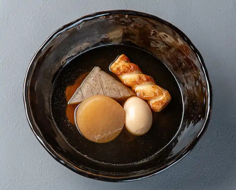 ちくわぶや魚粉で関東や静岡風のおでんを再現。全国各地の懐かしい味を一皿で楽しめます。
