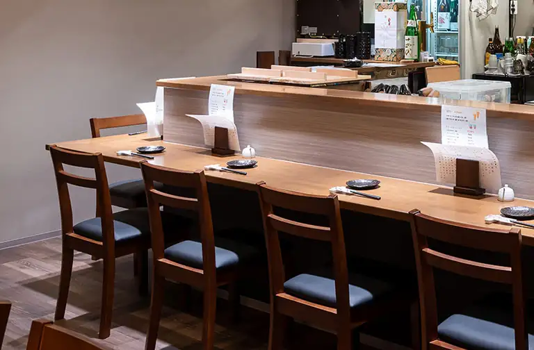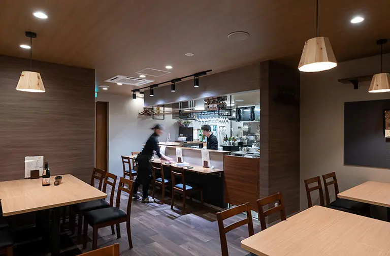 カウンターでもテーブルでも。仲間、恋人、一人飲みも気軽に楽しめます。