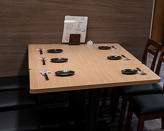 友人や同僚との飲み会にぴったりな5〜6名用テーブル席。落ち着いた照明と広々としたテーブルで会話が弾みます。