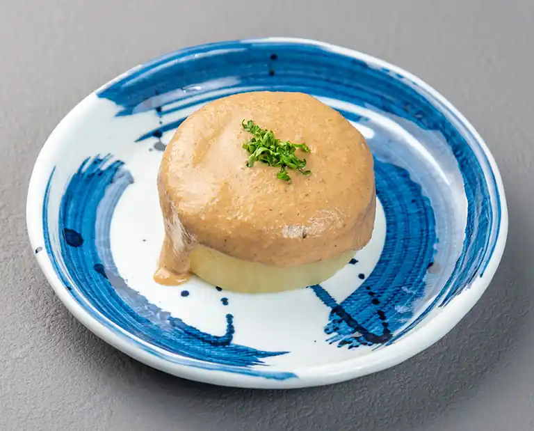 コンソメで炊いた大根にポルチーニ香るクリームソースを合わせた洋風おでん。芳醇な香りが新しい発見に。